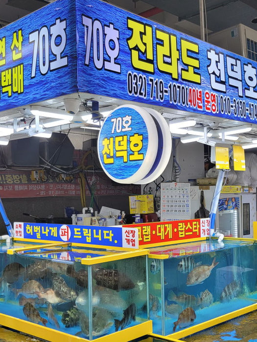 Cheondeokho is a popular sashimi restaurant located inside the Sorae Port Fish Market in Incheon.