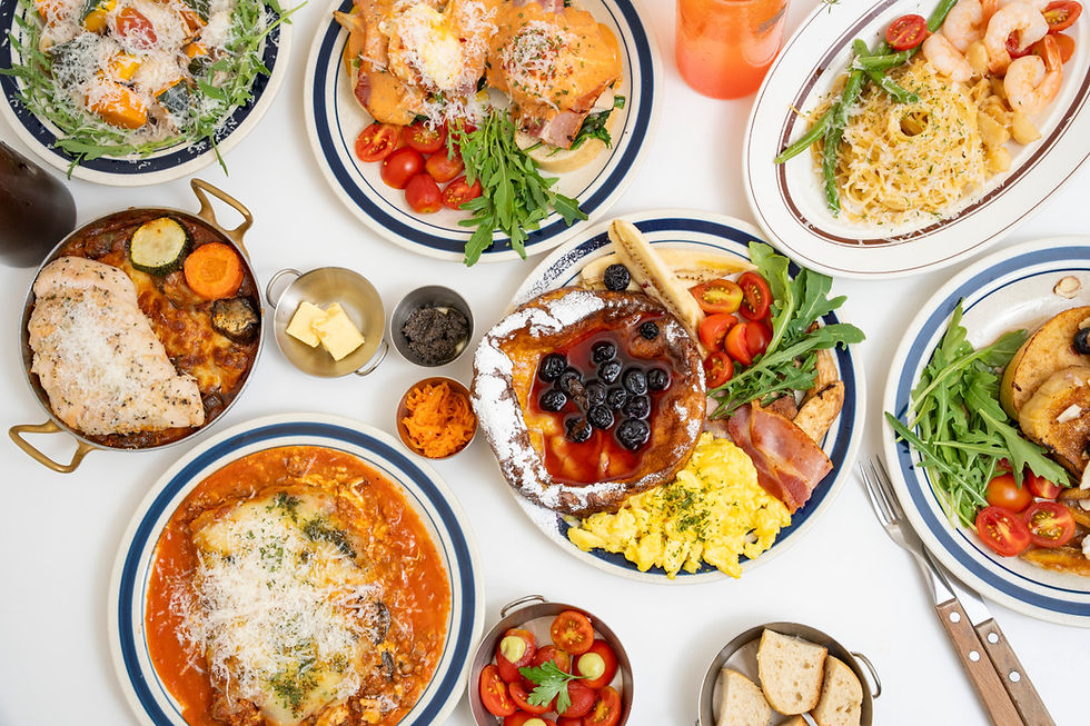 Kato is a popular brunch spot offering a variety of dishes such as German Pancakes, Eggs in Hell, and French Toast.