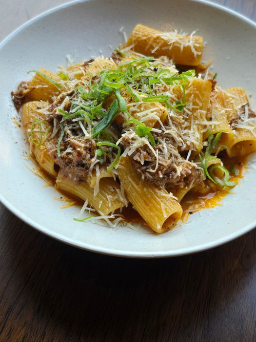 The menu bridges Korean ingredients and Western techniques, featuring unique items like Grilled Oysters, Uni Manchego Cheese Pasta, Hanwoo Doenjang Tartare, and Flower Short Rib Ragu Pasta.
