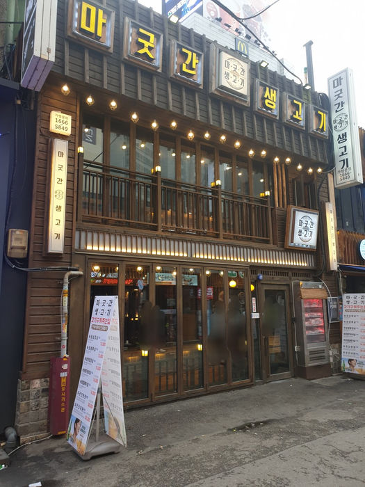 Magutgan Saenggogi is a restaurant specializing in fresh, aged pork cuts, with samgyeopsal (pork belly) and pork neck being the most popular choices.