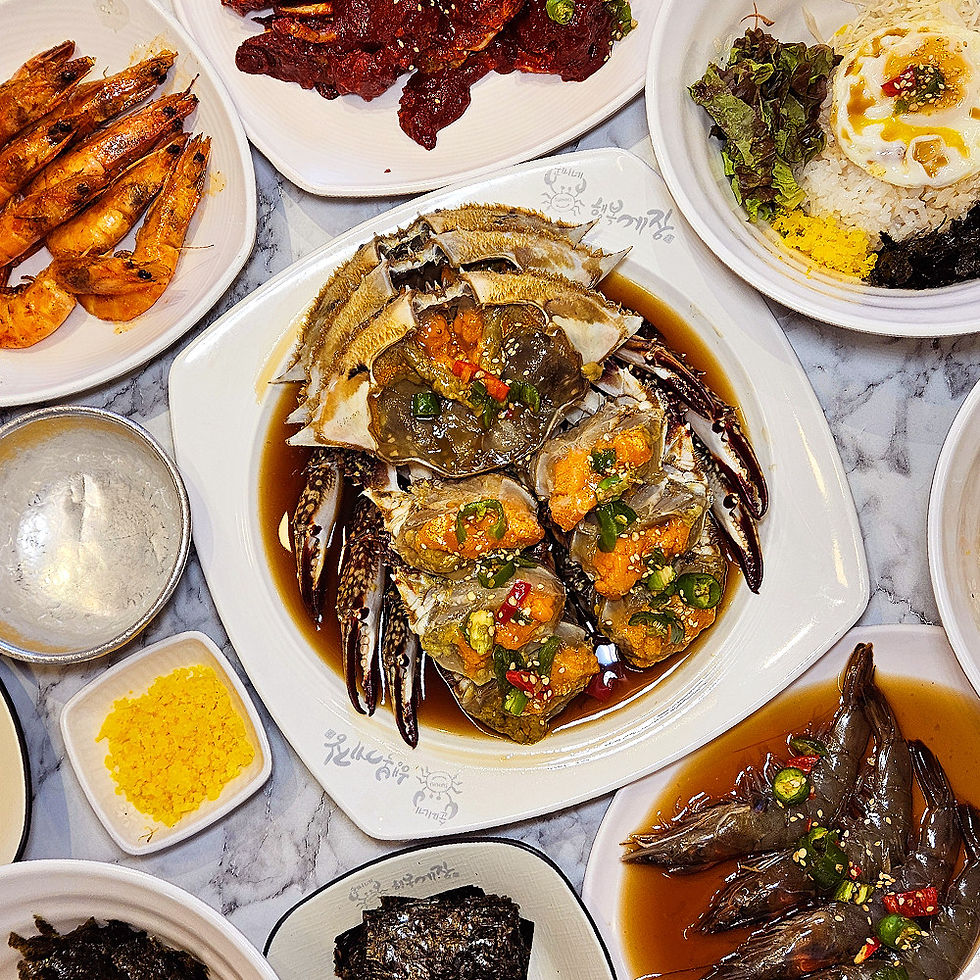 Sunmi’s Happy Crab Jang Dongdaemun Branch is a seafood restaurant specializing in Soy Sauce Marinated Crab, Spicy Marinated Crab, and Shrimp Jang, all made with fresh ingredients.