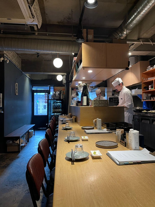 Inside, Yakitori Mook features a long counter and open kitchen where you can see the chef grilling the skewers right in front of you. The ambiance is warm, elegant, and intimate—great for solo diners or small groups who appreciate craftsmanship and a focused dining experience.